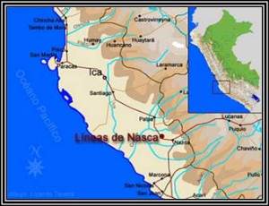La civilización Nazca se caracteriza por su extraordinaria cerámica, fácilmente reconocible por su riqueza de colores, formas variadas e iconografía de carácter religioso. Se caracterizan por su asa puente, proveniente de Paracas. Esta cultura emerge como un proceso de continuación de la cultura Paracas Necrópolis ya que ambas culturas tenían las mismas tradiciones, usaron las mismas técnicas de agricultura y además también eran unas culturas militares. Ubicación de la Cultura Nazca Esta extraordinaria civilización se desarrolló en los valles de Chincha, Pisco, Ica, Nazca (río Grande) y Acari (costa sur del Perú). Su centro principal: Cahuachi fue la capital de la sociedad Nazca ubicado a 49 Km. de la actual ciudad de Nazca en la cuenca del río Grande y a 500 km. al sur de Lima.